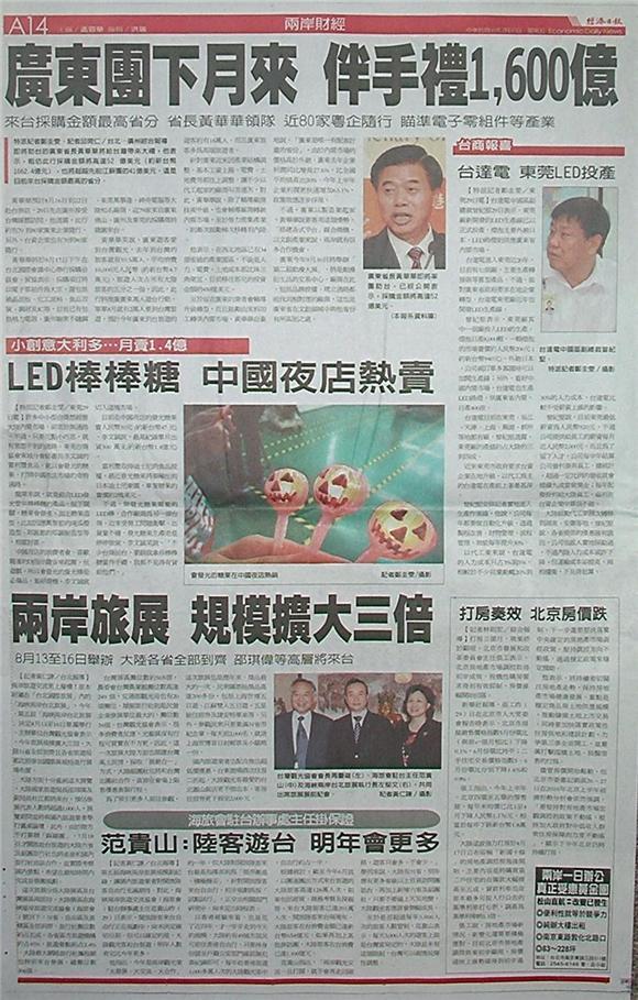 去年十一月,江蘇省委書記梁保華率團訪問台灣,寫下四十一點五億美元的採購紀錄。作為打響中國改革開放第一槍的廣東省,下個月將力拚跨越「江蘇門檻」,以五十二億美元為目標,創新對台採購金額最高的省分。
