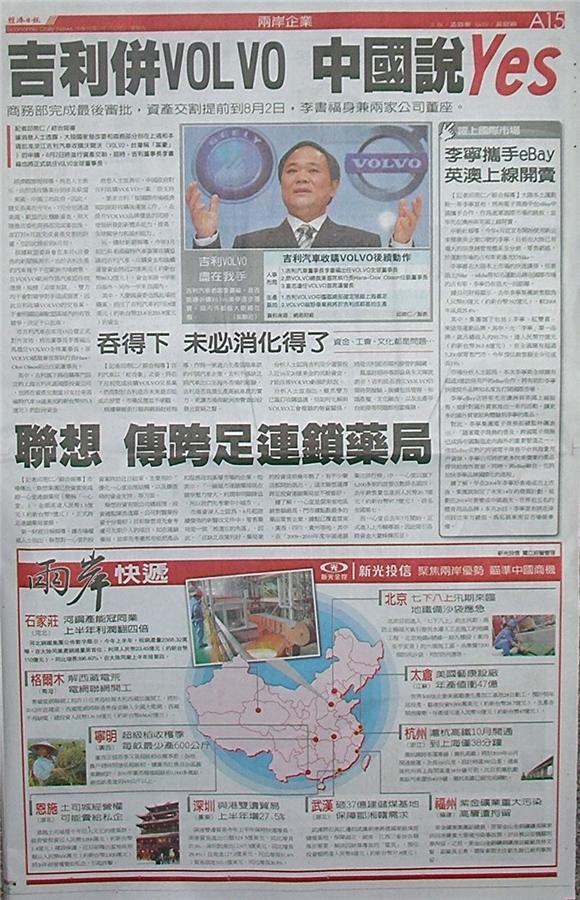 據消息人士透露,大陸國家發改委和商務部分別在上週和本週批准浙江吉利汽車收購沃爾沃(VOLVO,台灣稱「富豪」)的申請,8月2日將進行資產交割,屆時,吉利董事長李書福也將正式就任VOLVO全球董事長。