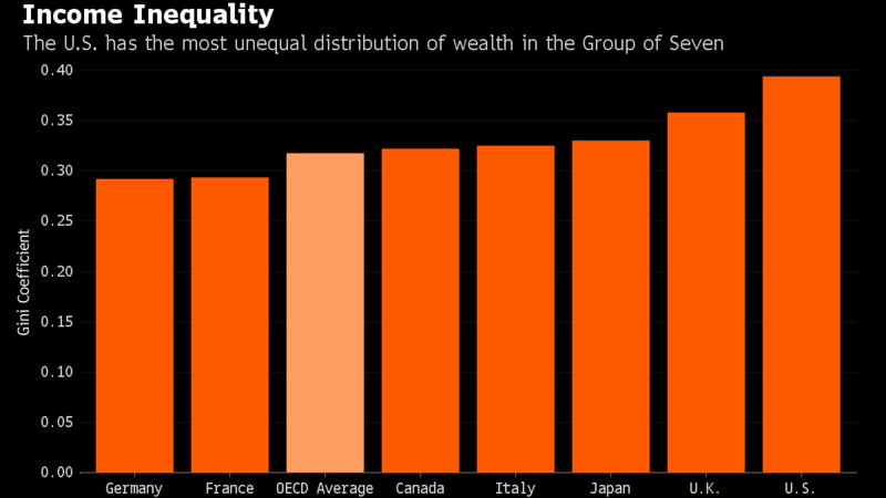 美股一張圖告訴你 G7中民眾收入差距最大的竟是這國!鉅亨網新聞中心2016-11-28 18:23經濟合作與發展組織 (OECD) 稱,美國是七國集團 (G-7) 中民眾收入差距最大的一個。OECD 使用基尼系數來衡量財富分配狀況;該系數為 0,則表明某國每個人的收入都一樣,當系數為 1 時,則表明某國有 1 個人獲得了所有的收入。在 G-7 國家中,德國和法國的基尼系數最低,為 0.29,而美國為 0.39。美股歷史統計9成機率續漲,年底有布局良機掌握全球財經資訊點我下載APP文章標籤收入貧富差距更多延伸閱讀聯合國:貧窮和貧富不均 全球6900萬兒童恐活不過5歲川普為什麼當選?皮凱提:貧富不均 專家:點擊經濟才是禍首鉅亨講座看更多講座公告上一篇川普若打貿易戰 中國要靠「孫子兵法」迎敵?下一篇希拉蕊表態支持3關鍵州重新驗票 川普炮轟「詐騙」0