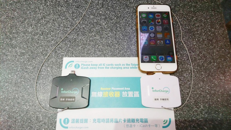 為因應旅客行動裝置充電需求,高鐵將「無線充電服務」設置於車站內候車區的上網台,旅客下載「inforCharge 電電充 APP」後,開啟 APP 掃描接收器上的行動條碼,將接收器與手機充電孔連接,放置於充電區的框格內即可開始充電。
