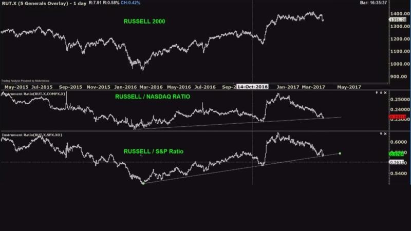 根據 Todd Gordon 說法,這些警訊首先存在於,這些通常被視為國內經濟表現指標的小型股。去年 11 月美國總統大選以來,小型股上漲約 16% ,但今年迄今,羅素 2000 指數實際上又再度重回淨空單水平。