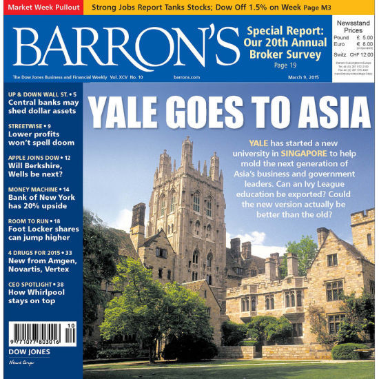導讀:《巴倫周刊》最新一期封面文章稱,耶魯大學希望通過與新加坡國立大學聯合辦學培養亞洲新一代領導人,但能否成功要多年后看畢業生的表現才能下結論。