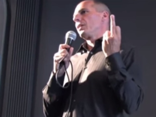Varoufaki 是在 2013 年尚未接任財長前,於一場演講中做出不雅手勢。當時他正在表是希臘應該在 2014年違約,而不是接受其他歐元區夥伴的大規模援助。