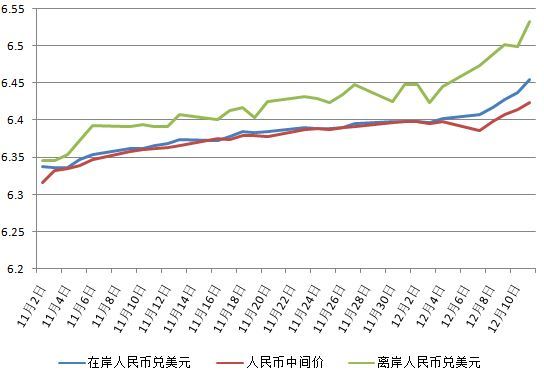 12月11日,在岸市場人民幣兌美元即期匯率收盤報6.4553,相比前一交易日收盤價6.4378大跌175個基點,為連續第六個交易日下跌並創逾四年新低。盤中波動區間為6.4420至6.4564,成交額223.14億美元。