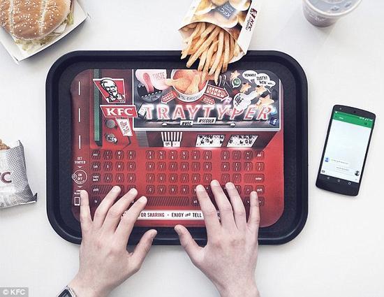 新浪科技訊 北京時間5月22日消息,據國外媒體報導,肯德基推出了一種內置鍵盤的新型藍芽托盤墊。有了它,你就可以盡情享用一桶額外的炸,而不用擔心評論Facebook的新帖子會弄髒自己的手機。