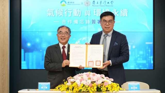 為因應氣候變遷挑戰,加速推動我國邁向淨零排放與永續發展目標,環境部今(21)日與國立臺灣大學簽署「氣候行動與環境永續」合作備忘錄(MOU),由環境部部長彭啓明與臺灣大學校長陳文章代表簽署。雙方將建立長期穩定的合作框架,推動氣候政策與技術研究、人才培育、氣候韌性建構等多元合作,共同為臺灣打造兼顧減碳與調適的氣候行動藍圖。