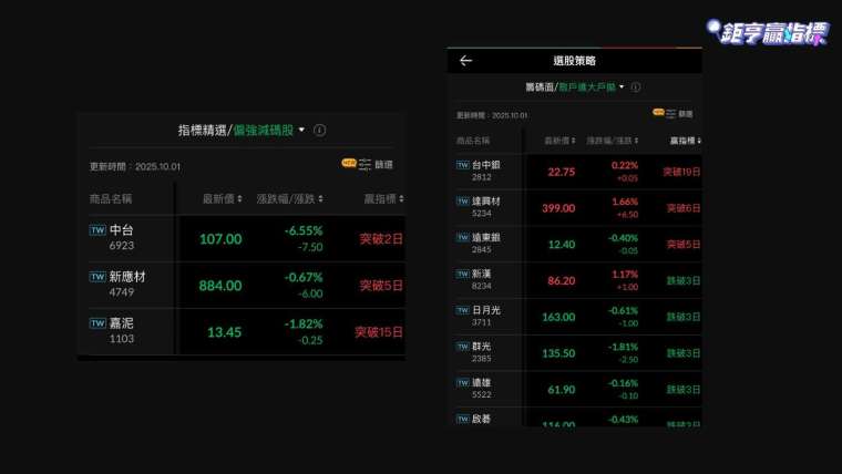 投資人是否該陸續獲利了結入袋為安? J 董建議可觀察《鉅亨贏指標》當中的「偏強減碼股」、「散戶進大戶拋」等空方策略,手中持股只要出現跌破強弱關鍵,就要注意調整減碼。