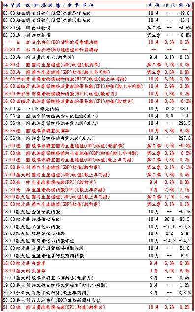 隨著美國總統川普表示與中國國家主席習近平週四會晤可能長達三到四個小時,重點討論停止貿易戰問題,預計進展順利,雙方有望簽署暫停美國更嚴厲關稅和中國稀土出口管制的協議,激勵美元上漲,並據全美不動產協會 (NAR) 公布美國 9 月成屋待完成銷售指數較前月意外持平 74.8,而且美國聯邦公開市場委員會 (FOMC) 如預期下調聯邦基金利率目標區間 25 個基點至 3.75%-4.00%,為今年第二次降息,但 FED 主席鮑威爾對未來政策走向態度謹慎,稱對 12 月進一步降息未預設立場,提振美元兌日圓至 153.05 高點。今日市場聚焦 BOJ 貨幣政策會議決議,預估美元兌日圓阻力於 152.80-153.00,支撐於 151.60-80。
