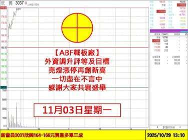 再來,像記憶體華邦電 (2344-TW)、南亞科(2408-TW)、被動元件龍頭國巨(2327-TW) 等也是一樣,當 AI 成為剛需,帶動記憶體進入超級周期、以及被動元件需求的暴增,因此,今日相關記憶體及被動元件族群得以一路飆不停;同樣的,聯鈞 (3450-TW) 搭上 CPO 趨勢列車,也是台積電明年最重要的一役:實現矽光子 CPO(共同封裝光學)量產,這一役一旦順利攻克,意味著 OpenAI、雲端服務巨人們打造的 AI 工廠,所苦惱的資料傳輸通路堵車、訊號延遲、前進龜速的難題將有機會迎刃而解,達成高傳輸、低耗能的夢幻目標,且讓 AI 資料演算時,跑得又順又快,聯鈞又是甲骨文光通訊模組主要供應商,後市會漲、還是會跌呢?相信大家都是聰明人,應該不需要我再多說了吧!還有呢?大師兄都幫你準備好了,歡迎跟上我們的腳步。