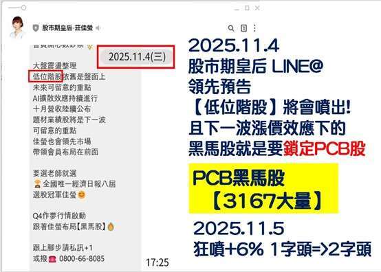 2025.11.4 股市期皇后 LINE@領先預告 (3167-TW) 大量