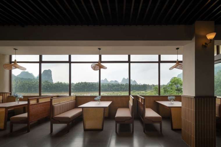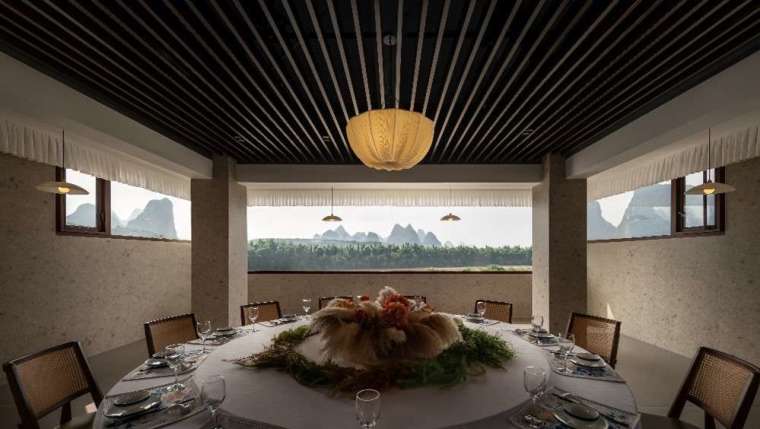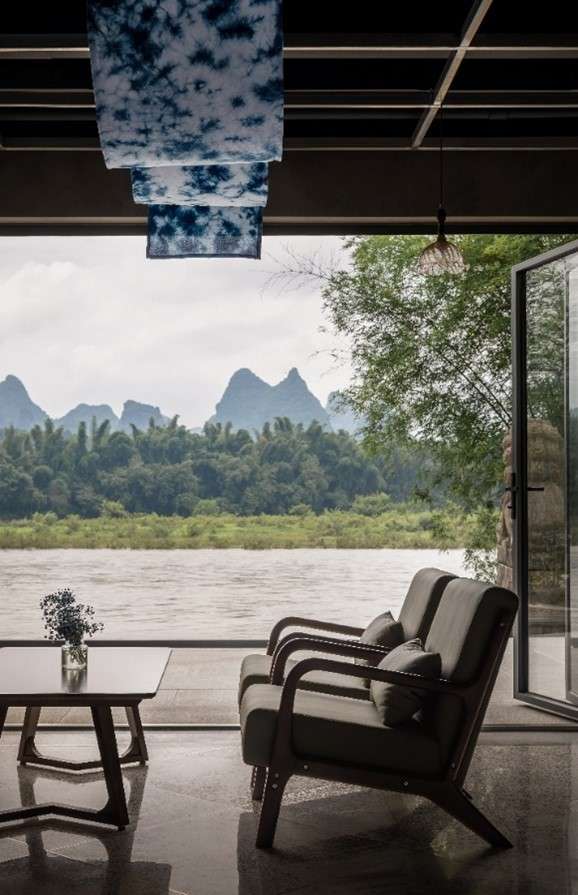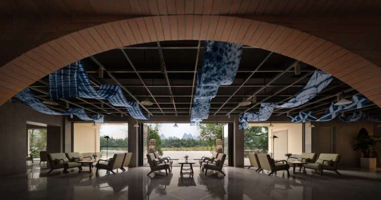 本案「菁出於嵐」坐落於灕江之畔,因 2005 年被指定為世界遺產,建築不得新建,只能於原有基體上再造。業主希望在有限條件中創造具文化深度的複合式場域,結合百花園、慢食咖啡、文創館、烘焙坊及糀食餐廳,成為凝聚地方文化的生活舞台。設計師以「青出於藍」為寓意,轉化在地少數民族的藍染工藝與陽朔山水意象,將自然景觀、建築結構與人文活動串連,讓空間不僅是商業載體,更成為當地文化體驗的新出口。