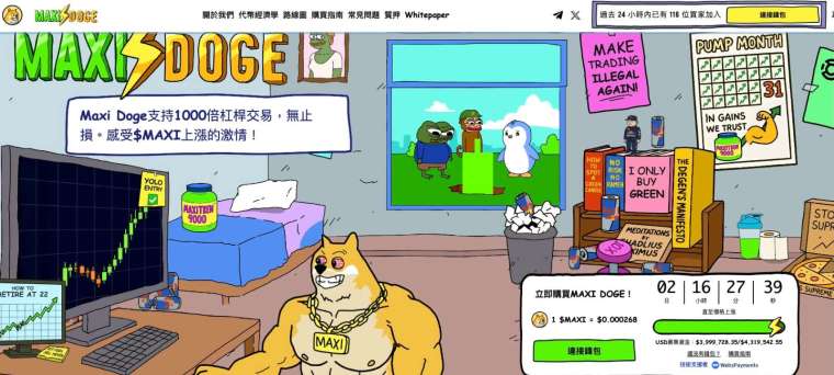 Maxi Doge($MAXI)是 2025 年最受討論的狗狗主題迷因幣新作,結合了健身文化、槓桿交易象徵與毫不掩飾的「極限能量」敘事。其角色形象 Maxi Doge 以超充能的姿態迅速成為社群迷因,在 Dogecoin 與 Shiba Inu 之後再次增添狗狗系的趣味性與狂熱氛圍。