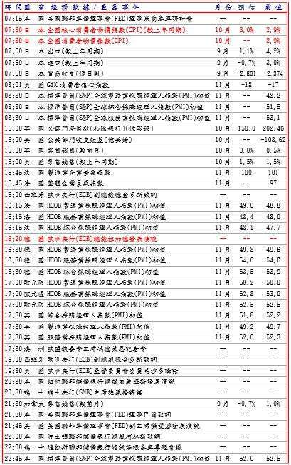 隨著德國聯邦統計局公布 10 月生產者物價指數 (PPI) 較前月漲 0.1% 及較上年同期跌 1.8%,通貨膨脹略高於預期,並據德國央行 (Bundesbank) 在月度報告表示,得益於服務業推動經濟擴張及疲弱的工業部門趨於穩定,德國經濟今年第四季可能溫和增長,而且歐洲央行 (ECB) 管理委員會委員馬赫盧夫稱,只有前景發生實質變化才會支持降息,提振歐元兌美元至 1.1549 高點。預估今日歐元兌美元阻力於 1.1535-55,支撐於 1.1450-70。