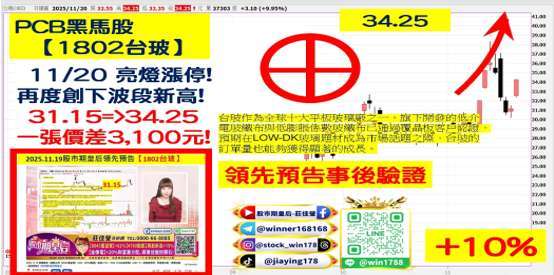 (1802-TW)台玻,31.15=>34.25 領先預告後大漲 + 10%, Q3 終止連 6 季虧損,EPS 0.10 元,前三季 EPS 為 -0.33 元,較去年同期虧損收斂,法人指出,中國玻璃期貨仍待觀察,且去年 Q4 基期偏高,但受惠 AI 需求、高階載板漲價推升玻纖布業務,預期 Q4 獲利雖可能較 Q3 下滑,仍有望接近損平,今年全年虧損可望低於去年,AI 伺服器與先進封裝帶動 Low DK、Low CTE 玻纖布需求強勁,價格上漲推動毛利回升。台玻亦加速擴產,計畫將 Low DK 產線自 4 條擴至 12 條,並開發更低損耗與低 CTE 產品。