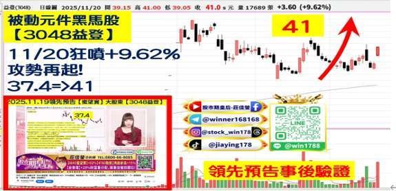 2025.11.19 股市期皇后節目領先預告被動元件黑馬股 (3048-TW) 益登