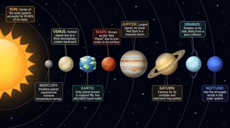 又或者輸入提示詞:畫個太陽系圖表並給每個行星加個冷知識註釋,就能得到一張知識感十足的太陽系教學圖。