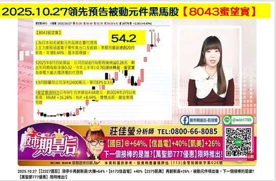 225.10.27 股市期皇后節目領先預告被動元件黑馬股 (8043-TW) 蜜望實