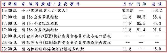 上週五數據顯示,日本 10 月全國消費者物價指數 (CPI) 與核心 CPI 均較上年同期漲 3.0%,仍高於日本央行 (BOJ) 的 2% 目標,讓市場保持對 BOJ 近期升息的臆測,另外進口與出口分別較去年同期增 0.7% 及 3.6% 超過預期,貿易逆差則減至 2,318 億日圓,而且標準普爾 (S&P) 全球調查日本 11 月製造業採購經理人指數 (PMI) 初值連續五個月萎縮達 485.8,但速度較前月低及產出降幅趨緩,提供日圓支撐,並據日本首相高市早苗內閣批准一項 21.3 兆日圓經濟刺激方案,加劇財政狀況惡化的憂慮,但財務大臣片山皋月表示,日本認為干預外匯市場是應對日圓過度波動和投機性走勢的一種可能,為迄今最強烈警告,而且 BOJ 總裁植田和男稱,必須注意日圓疲軟可能推高進口成本和更廣泛價格,影響基礎通貨膨脹,將在接下來的策會議討論升息的可行性和時機,引發美元兌日圓自 157.54 高點下跌。