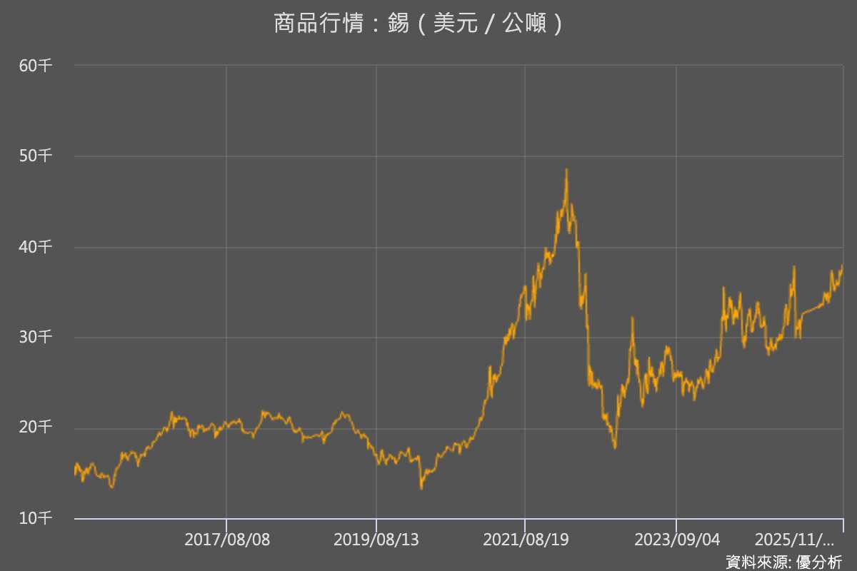 與此同時,全球半導體與電子產業自下半年起顯著回溫,帶動焊料需求上揚,使錫價在供需共振下保持強勢。市場認為,在供應雙重受限與需求回升交織下,錫價中樞維持高位甚至溫和上行的機率提高,具備資源與冶煉一體化布局的企業更具中長期定價能力。