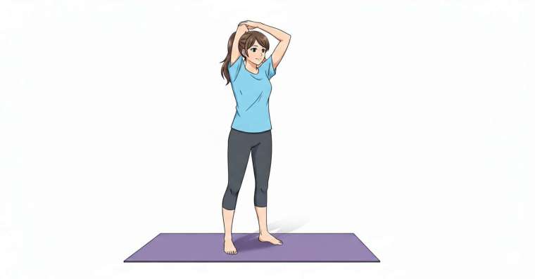 肱三頭肌伸展:站立,將右手臂向上彎曲,手掌輕觸背部肩胛骨之間。左手輕壓右手肘部。感受到右手外側肌肉緊繃感。