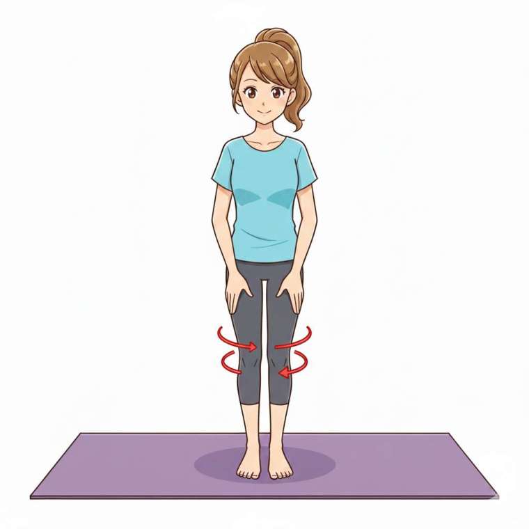 2. 保持雙腳併攏,膝蓋帶動小腿,緩慢地順時針畫圓。感受膝蓋和踝關節的活動,動作輕柔緩慢。