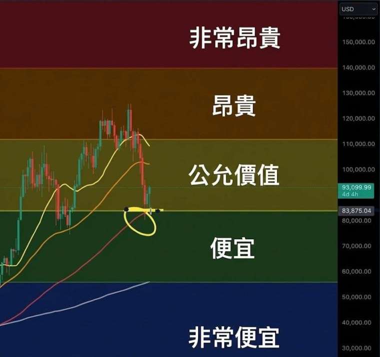 綜觀模型訊號、價格位置與市場情緒變化,本人在此階段更傾向視 93800 美元區域為「深度策略性布局點」,而不是空頭口中的「下跌中繼」。長期估值模型歷來在判斷牛市主升段前的折扣帶上極為可靠,而目前的結構與過去每一次大型反轉前的環境高度相似。