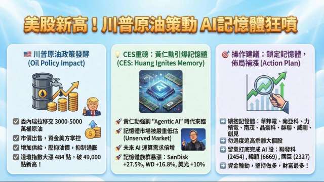 美國總統川普週二 (6 日) 正式宣布,委內瑞拉臨時當局將向美國移交 3,000 萬至 5,000 萬桶原油。這批原油將以市價 (Market Price) 出售,所得資金由美方全權掌控,確保用於造福兩國人民。如同我之前的精準分析,美國掌控委內瑞拉後,該國原油將重返國際市場,供給大增將使油價持續承壓,進一步抑制通膨。在降息循環不變、資金效應持續發酵下,道瓊指數昨夜大漲 484 點,一舉突破 49,000 點大關,再創歷史新高!多頭格局無須懷疑!