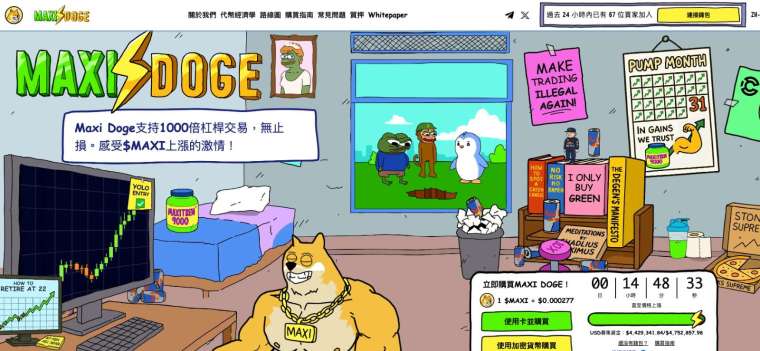 Maxi Doge($MAXI)以「健身」、「極限能量」、「杠桿精神」高度戲劇化的敘事成功在迷因市場打出差異化定位。這種將訓練文化與迷因融合作為品牌調性的方式,使其能在眾多以幽默為核心的迷因幣中脫穎而出,形成明顯的視覺與文化記憶點。其預售價格為 0.000277 美元,募資額已超過 440 萬美元,並向 450 萬美元區間持續攀升。