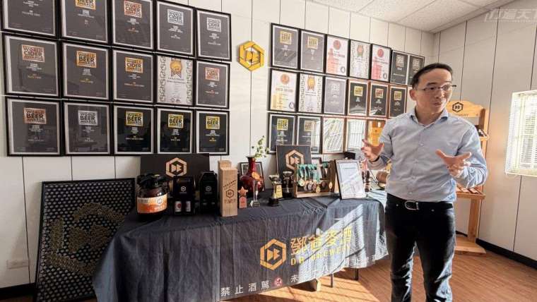 02▲位於桃園龍潭的鄧爸麥酒是台灣精釀啤酒圈中的傑出釀酒人,整面牆上都是獎牌,精釀啤酒味道極好。