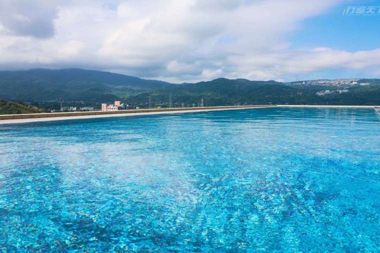 06▲位於頂樓的無邊際泳池,將金山連綿的蒼翠山巒與藍天盡收眼底。