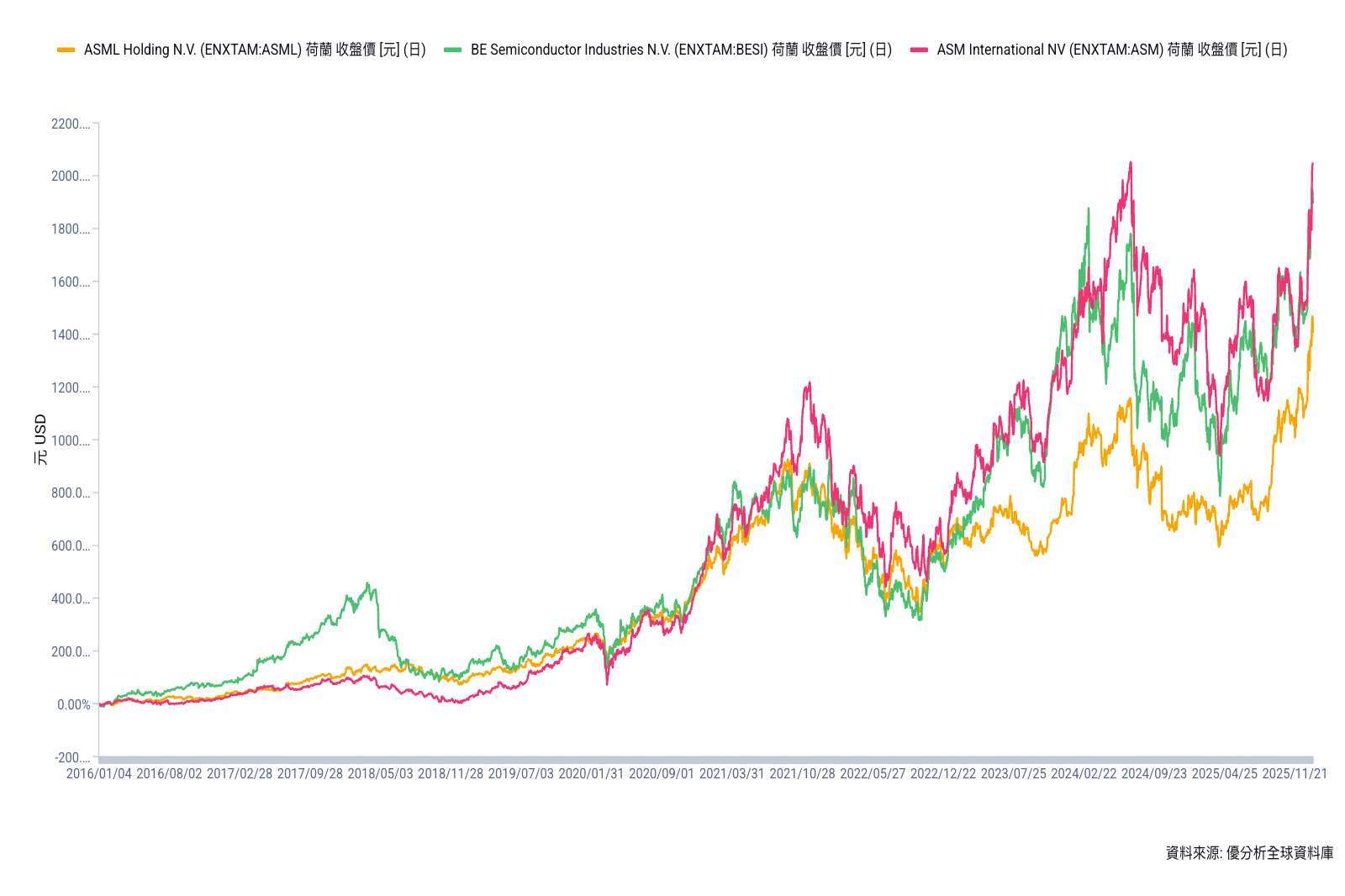 荷蘭股市同樣未能倖免,半導體權值股拖累 AEX 指數下跌 1.3%。其中,晶片設備龍頭 ASML 跌 3%,先進封裝設備商 BE Semiconductor 下挫 2.2%,ASM International 亦回落 0.55%。即便部分公司公布營收成長消息,仍難抵整體市場風險趨避情緒。北歐半導體族群同步走低,跌幅約 3%。