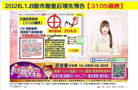 2026.1.8 股市期皇后節目領先預告 (3105-TW) 穩懋