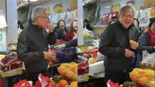 多段網路影片顯示,黃仁勳走進一家水果攤,像一般市民一樣慢慢挑選水果,一邊與攤主聊天,一邊試吃耙耙柑與砂糖橘,吃完還頻頻點頭,臉上掛著親切笑容。