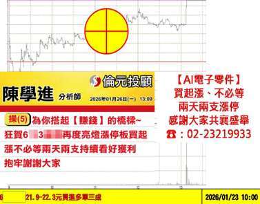 今日台北股市就是持續開高大漲再創新高,一切盡在不言中,相信大家都有目共賭!然而,在今日續創歷史新高的過程中,雖然今日成交量不增反減、急速萎縮下來,且三大法人持續站在賣方,合計賣超 94.65 億元,不過,短線若有震盪,大家也不必擔心,因為台股擁有五大利多題材加持 (※詳情見飆股鑫天地 LINE@首頁,都有完整說明與分享),加上 AI 需求火熱持續推動相關 AI 鏈營運成長向上,以及俄烏談判露曙光,烏克蘭總統澤倫斯基表示,這次的討論內容「非常有建設性」,雙方針對停戰的具體參數進行了深入溝通,並傳出最快將於 2 月 1 日重返阿布達比展開新一輪協商,立馬帶動塑化台塑 (1301-TW)、南亞 (1303-TW)、台化 (1326-TW)、台塑化 (6505-TW)、台聚 (1304-TW)、紡織力麗 (1444-TW)、力鵬 (1447-TW)、集盛 (1455-TW)、EG 東聯 (1710-TW)… 等傳產股大漲上來,因此,在「天時、地利、人和」萬事俱備下,後市仍將不容小覷!有拉回就是你的機會,真的是要好好把握喔!