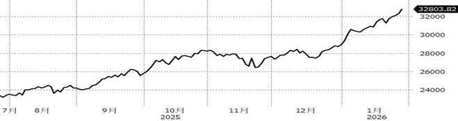 加權股價指數近 6 個月表現:(資料來源:Bloomberg,截至 2026/01/28)