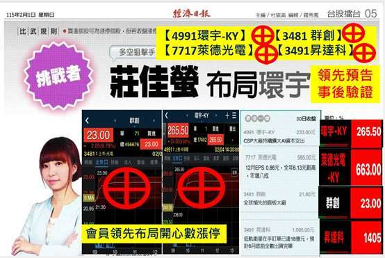 2026.2.1 預告 (3481-TW) 群創、(4991-TW)環宇 - KY、(3491-TW)昇達科、(7717-TW)萊德光電,雙雙噴出亮燈漲停!