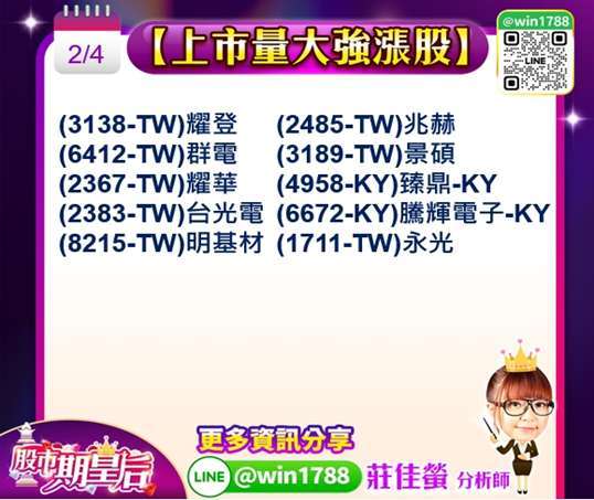 (3481-TW) 群創,為全球前四大面板廠,主力布局電視、車用與消費性電子顯示器,近年積極由傳統面板走向高附加價值應用,隨 FOPLP 先進封裝技術成功切入 SpaceX 的 RF 供應鏈,加上車用事業併入 Pioneer 後規模擴大,法人預估 2026 年營收可望出現跳躍式成長,受利多題材帶動,再加上運動賽事與換機需求推升 TV 面板報價,市場資金與籌碼同步偏多,短線多方氣氛濃厚,投資人可持續關注成交量與主力動向,靈活調整操作策略。