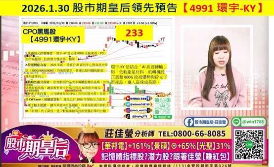2026.1.30 股市期皇后領先預告 (4991-TW) 環宇 -KY