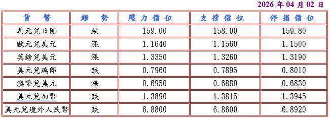 隨後數據顯示美國 2 月零售銷售較前月升 0.6% 創七個月新高及 3 月 ADP 美國民間就業崗位穩步增加 6.2 萬,並據聖路易聯邦儲備銀行總裁穆薩萊姆稱,美國經濟與 2022 年相比更能應對油價飆升,而且美國住宅抵押貸款利率上周飆升至去年 8 月以來最高,帶動美國公債收益率走高,但美國 1 月企業庫存意外較前月降 0.1%,而且市場期待中東局勢降級,增強日圓買盤,美元兌日圓跌至 158.25 低點。今日聚焦美國總統川普於臺北時間 09:00 就伊朗問題發表全國講話,預估美元兌日圓阻力於 159.00-20,支撐於 157.80-158.00。