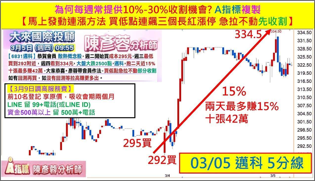 【3 月 9 日 調高服務費】今天前十名登記 ,原價優惠,吸收兩個月會期。 LINE 留 99 + 電話,資金 500 萬以上留 500 萬 + 電話。