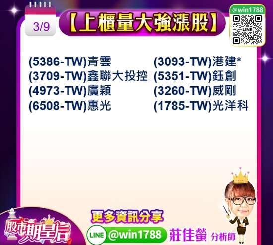 每日分享盤勢解析跟精選產業個股,讓投資朋友輕鬆追蹤 2025 年年台股操作方向,相關詳細內容請加入 Line@索取,免費提供給您!
