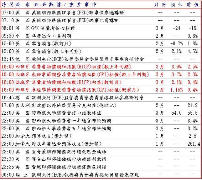 隨著歐洲央行 (ECB) 數據顯示,2 月銀行對企業貸款加快增長達 2.9% 及對家庭貸款增長保持 3.0%,並據 ECB 副總裁德金多斯稱,歐元區銀行受中東戰爭的直接曝險有限,但仍可能引發系統性壓力,而且市場研究機構 GfK 和紐倫堡市場決策研究所 (NIM) 發布德國 4 月消費者信心指數降至負 28.0,打壓歐元兌美元至 1.1519 低點。預估今日歐元兌美元阻力於 1.1530-50,支撐於 1.1440-60。