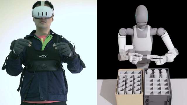 達明表示,TM Xplore I 的操作員只需穿戴 VR 頭戴式裝置與晶翔機電專屬的動作捕捉衣,便能將人類精細的雙臂抓取與物件分類等動作,與 TM Xplore I 達到零時差的完美同步,此項技術突破顛覆了傳統機器人的程式編輯與訓練模式,也透過收集大量且高擬真的真實世界數據,達明正大幅加速機器人從模擬環境到現實世界 (Sim-to-Real) 學習歷程與適應力 。