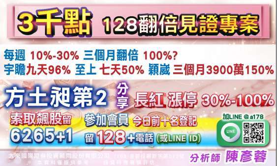 【V 轉 3 千點 128 翻倍見證班】今天前十名登記 , LINE 留 128 + 電話,資金 500 萬以上留 500 萬 + 電話。歡迎點下面 LINE 連結留言給彥蓉 ,我們一起打拼。