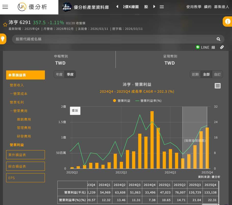當高毛利產品占比提升,再加上上游原料緊缺、價格仍有調整空間,營業利益率就不只是跟著營收上升,而是會被再推一階。