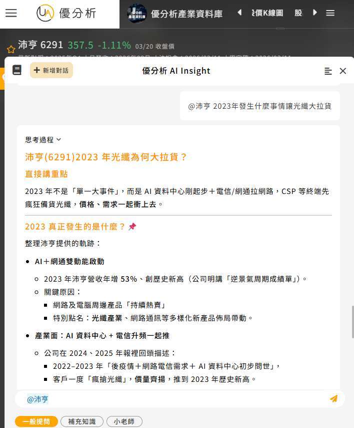 AI Insight告訴我們2023年當時 由於CSP 客戶集中備貨,光纖需求與價格同步上升,帶動整體產業的獲利擴張。