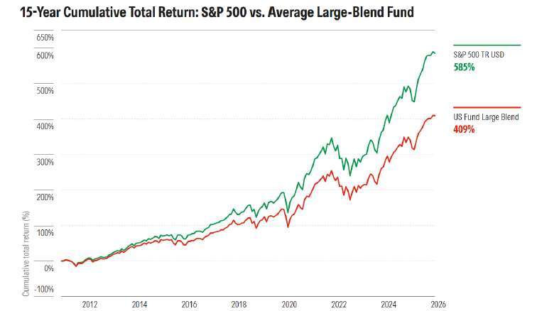 該指數採用市值加權機制,是一種簡單且具成本效率的配置方式,由公司規模決定其在投資組合中的權重。由於權重會隨價格變動自動調整,因此換手率與交易成本維持在較低水準。再加上通常較低的費用,這使得標普 500 指數基金在歷史上相較多數主動型基金,具備穩定的績效優勢。