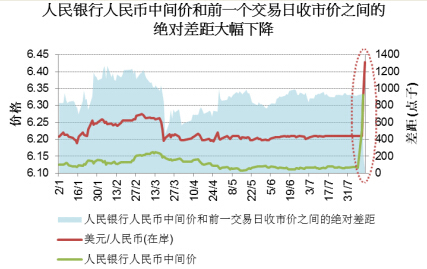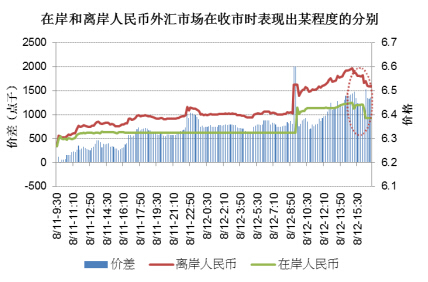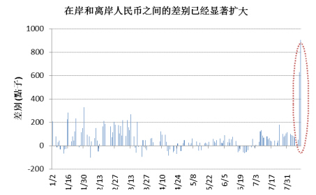 人民幣在岸和離岸匯率價差在過去兩天顯著擴大,價差會否繼續擴大值得市場密切關注。