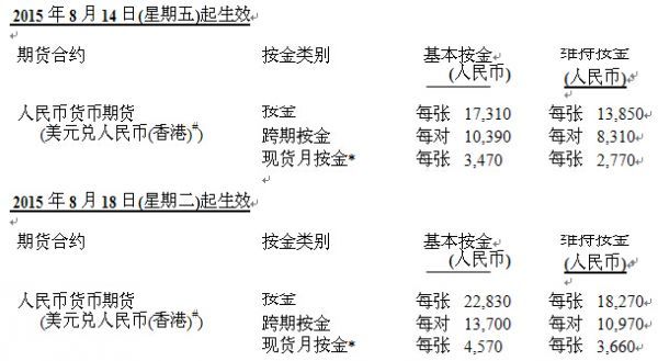 與此同時,香港期貨交易所12日宣布修訂人民幣貨幣期貨合約按金水平,最新按金水平如下: