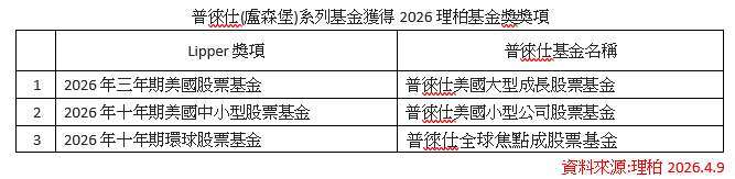【萬寶投顧】普徠仕(盧森堡)系列基金 2026年榮獲理柏三大獎